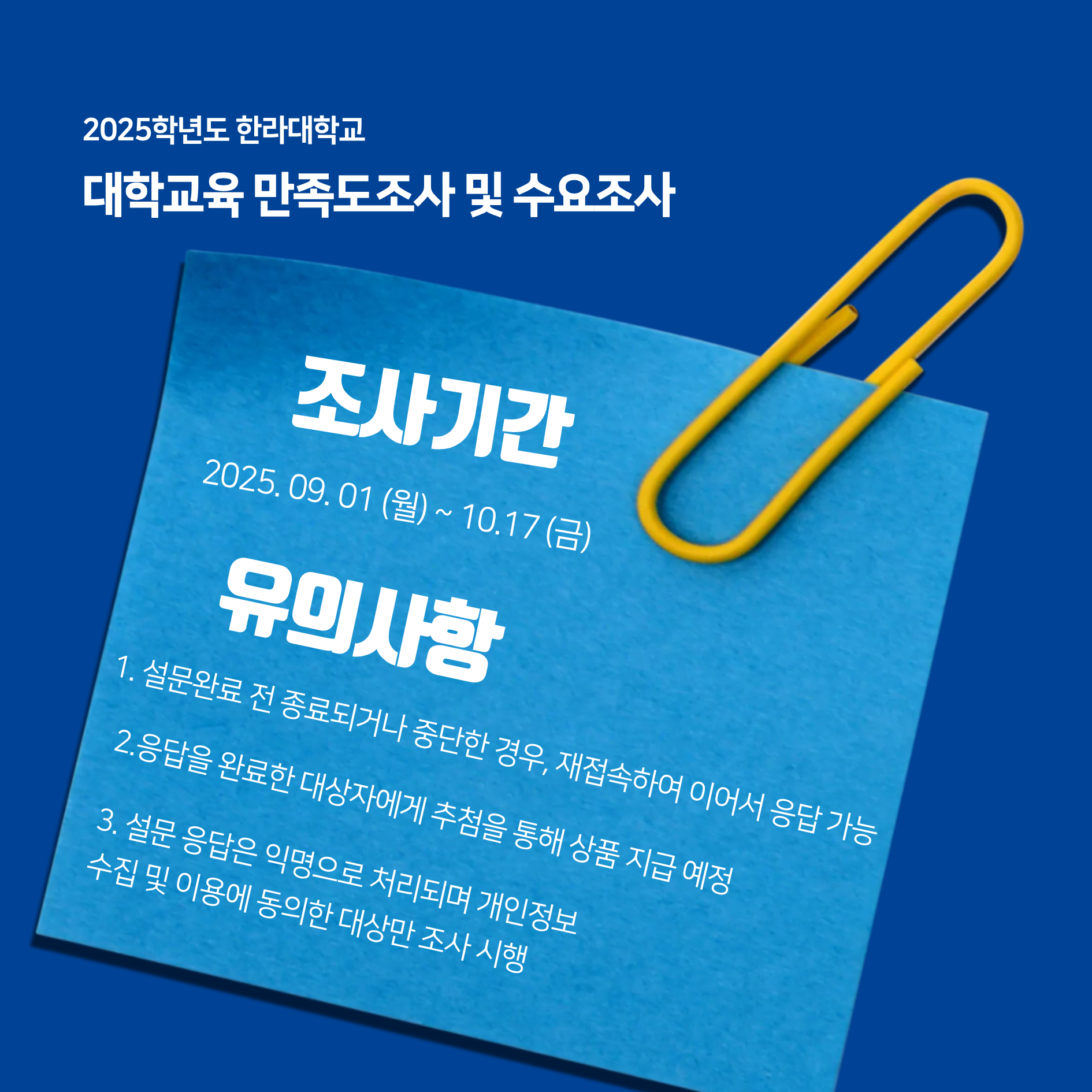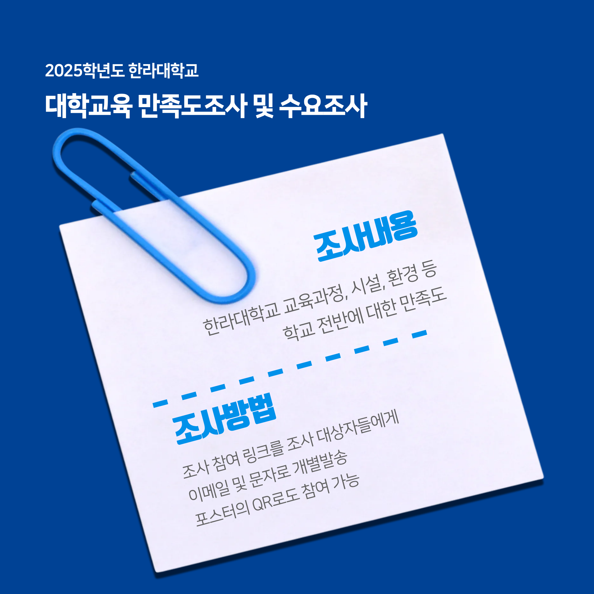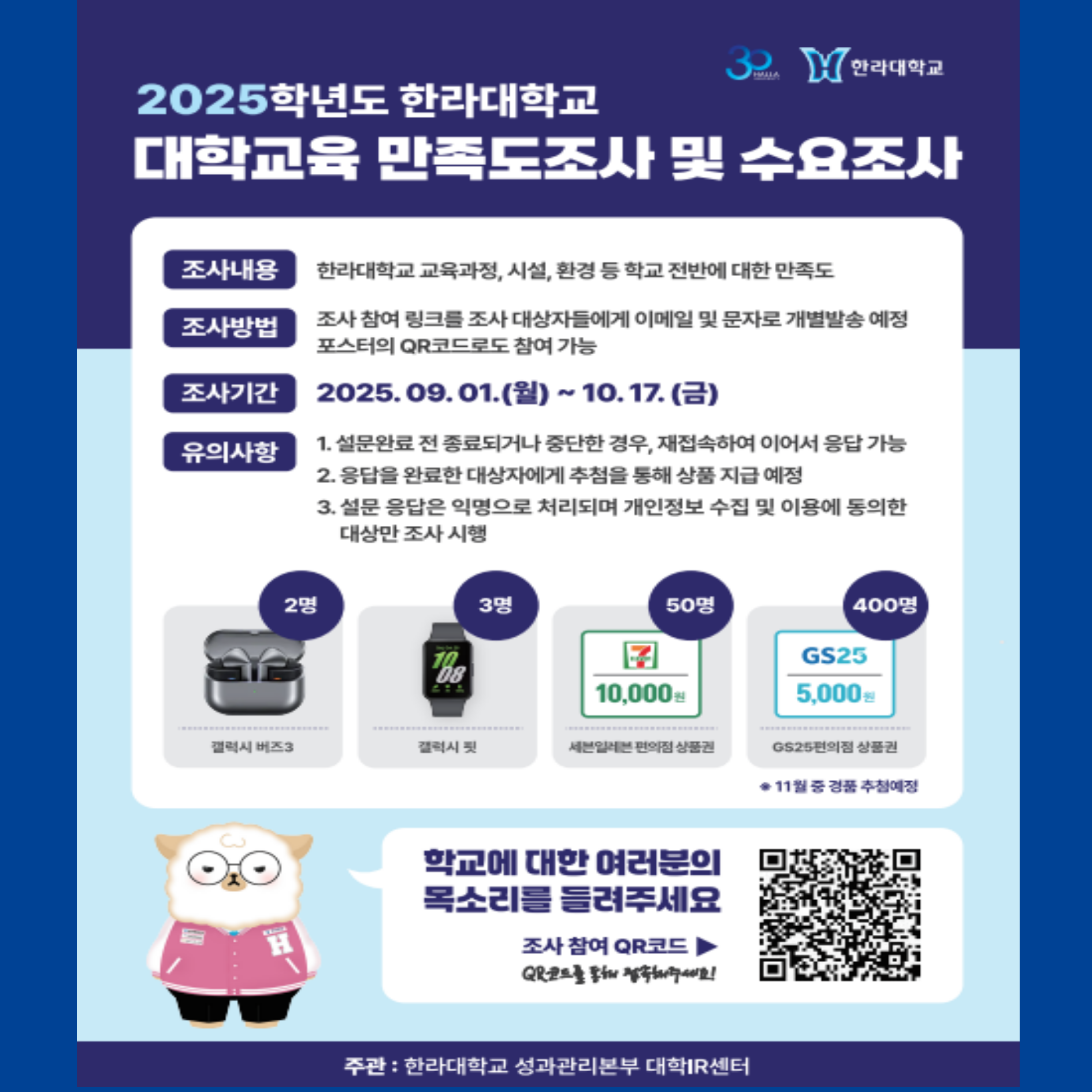 2025학년도 한라대학교 대학 교육 만족도 조사 및 수요 조사 안내
