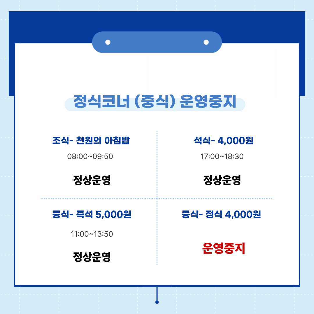 학생식당 운영 안내